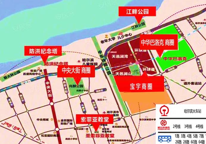 中華巴洛克街區具有百年歷史的中華巴洛克歷史文化保護街區項目的一期、二期工程,坐落于道外老城區的核心區域,北起靖宇街、南至南勛街、西到景陽街、東到南四道街,位于這四街所組成的圍合區域,占地面積12.33萬平方米,總建筑面積19.98萬平方米。
