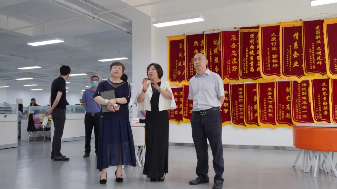2020年7月29日,哈爾濱市商務局局長孫永斌、哈爾濱市商務局電商處處長李彥紅、哈爾濱市商務局市場體系建設處處長房國臣、哈爾濱市商務局市場建設處科長李一一行蒞臨龍采科技集團進行實地調研指導工作。龍采科技集團總裁張繼婷、龍采科技集團副總裁吳志強及龍采科技集團電商工作室負責人曹彬彬共同接待來訪領導。