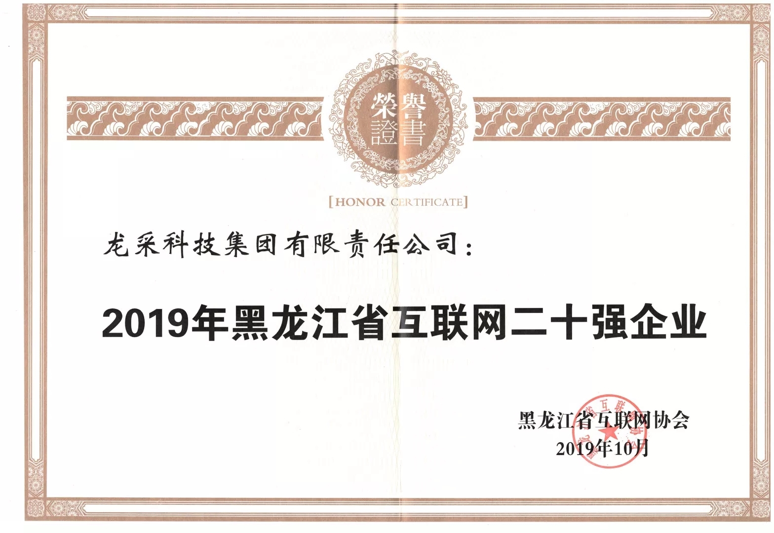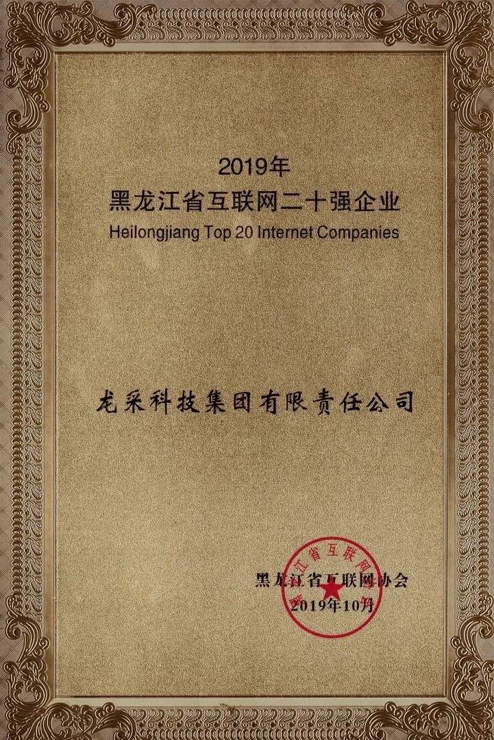 2019年10月25日,由黑龍江省互聯網協會主辦的2019年黑龍江省互聯網企業20強評選活動在哈爾濱揭曉,龍采科技集團以卓越的技術研發實力及創新能力,榮登2019年黑龍江省互聯網企業20強榜首。本次活動經過面向社會公開征集、各互聯網企業自愿申報、專家委員會綜合評審,并向行業主管部門征求意見和向社會公示之后,最終評選出2019年黑龍江省互聯網企業20強及成長型企業10強。省內電信運營企業、互聯網企業等多家單位代表參加了會議。