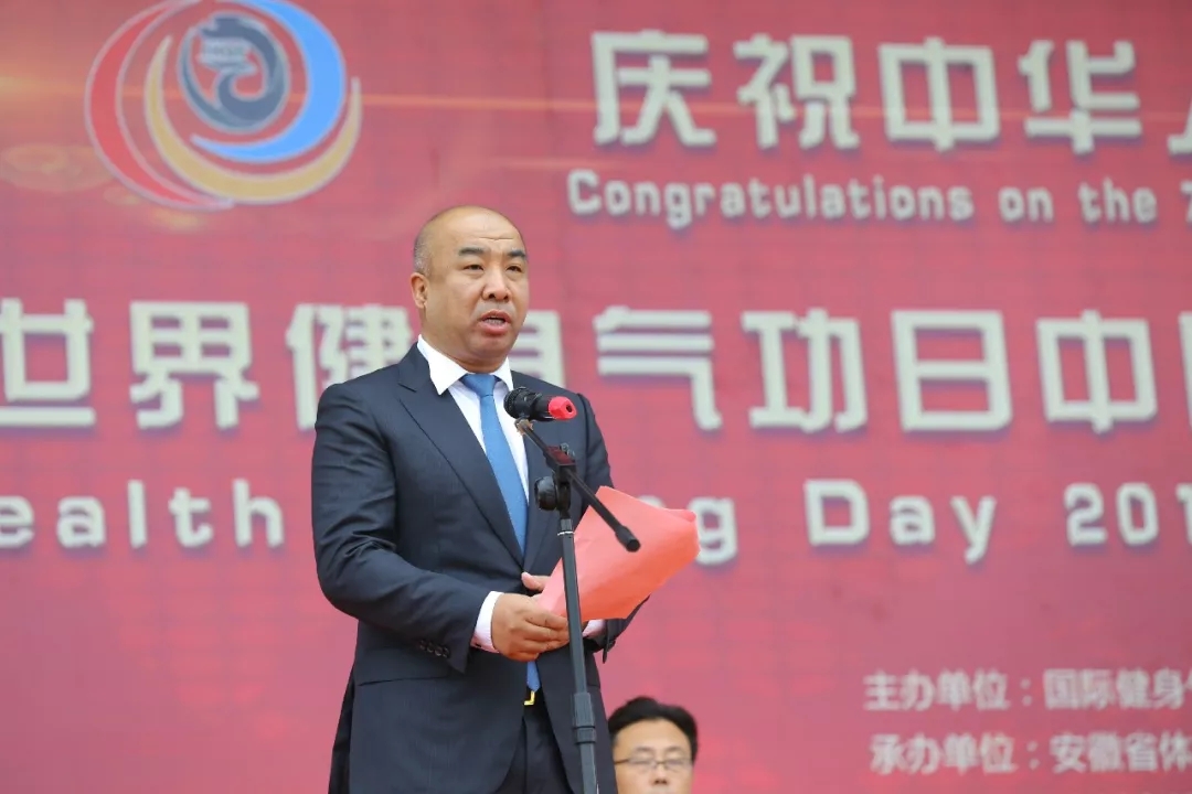 國際健身氣功聯(lián)合會(huì)主席、龍采科技集團(tuán)董事長楊春波,亳州市人大副主任馬昭華,安徽省體育局巡視員甄國棟,亳州市市委常委人民政府副市長李勝輝共同啟動(dòng)開幕球。