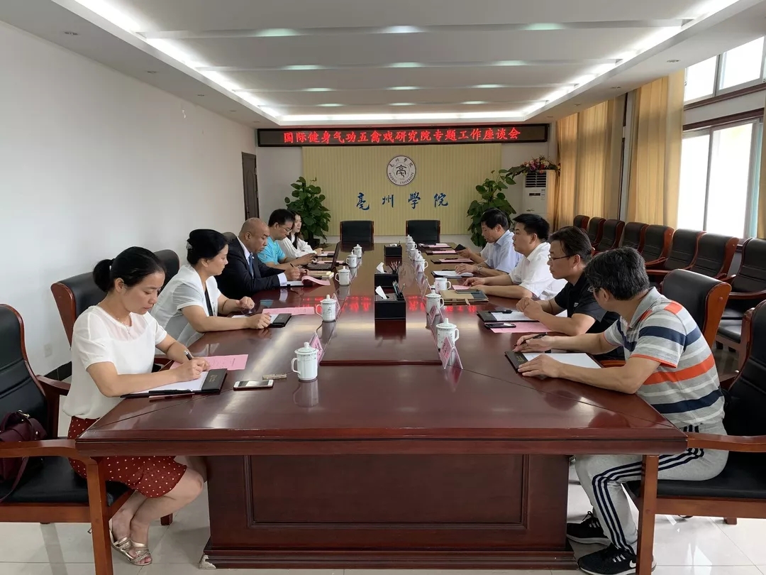 開幕式后 ,國際健身氣功聯(lián)合會(huì)主席、龍采科技集團(tuán)董事長楊春波,國際健身氣功聯(lián)合會(huì)總部辦主任王建軍,安徽省體育局副局長甄國棟,安徽省社會(huì)體育指導(dǎo)中心副主任馬亞琳,亳州市文旅體局局長雅浩海,亳州市文旅體局正處級(jí)調(diào)研員周金鐘,亳州市文旅體局五禽戲推廣中心主任陳靜以及毫州學(xué)院相關(guān)人員共20余人,出席了國際健身氣功五禽戲研究院專題工作會(huì)議。