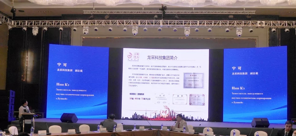 龍采科技集團大客戶副總裁寧可 以“互聯(lián)網技術營銷 智贏信息未來”為主題,并從科技互聯(lián)網智慧云服務、人工智能產品開發(fā)、行業(yè)數字化網建數據分析等方面進行了科技創(chuàng)新成果的落地展示分享,讓在座的中俄來賓深入感受百強科技魅力。