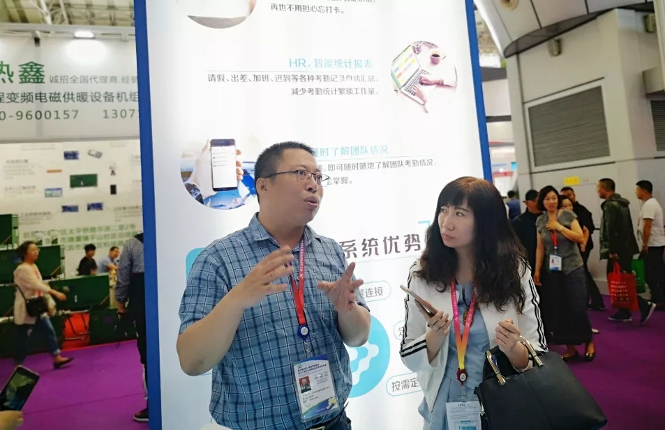 展會期間,旗下資??萍技瘓F自主開發的無感知考勤系統致力為企業打造智能化辦公,得到了政府與各大參展企業的關注,現場咨詢絡繹不絕。