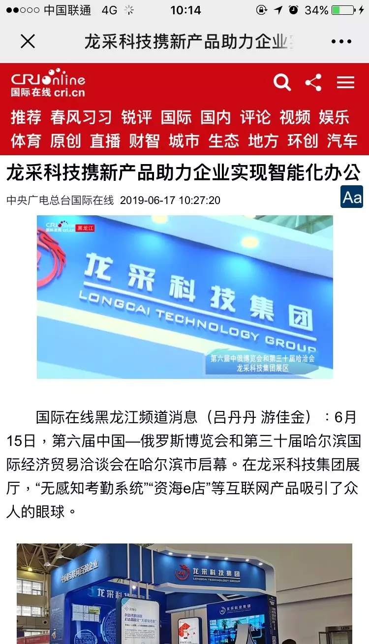 龍采科技集團作為黑龍江本土優秀互聯網企業,已多年受邀參展哈洽會,一直深受領導的重視與支持。本次展會龍采為中外來賓展示了相應科技創新成果的落地產品,如人資圈人力資源管理系統、無感知考勤及員工行為分析系統、采媒在線營銷管理系統、資海E店等,“體育+互聯網”應用的球友圈APP、語音技統、龍采館家等多項優秀技術產品,以及龍采投資出品的俄羅斯原裝進口龍采冰海貝加爾湖天然飲用水。